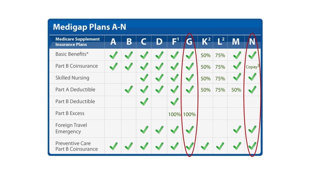 Here is a chart that we show that talks about the benefits of Medigap. Plan G and Plan N are the way to go when it comes to Medigap. If you have clients with any other plan, that should raise a red flag to at least look at their options.